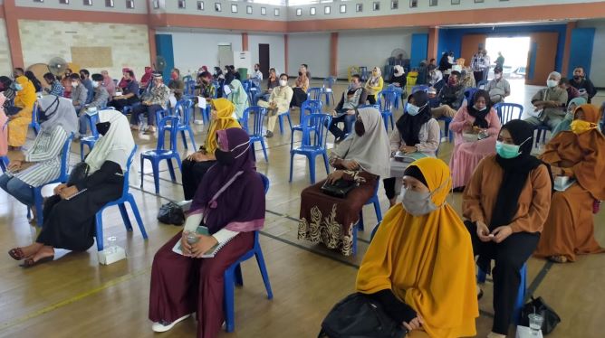 Peserta Sosialisasi Perda Pajak Daerah Kaltim yang hadir di Aula Gedung Graha KNPI Balikpapan menerapkan Protokol Kesehatan Covid-19