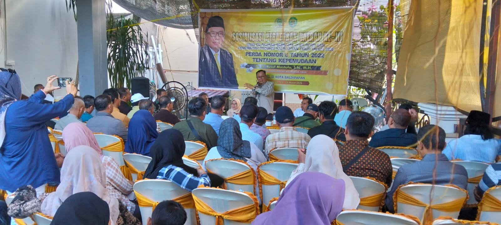 BALIKPAPAN,suarabalikpapan.com – Anggota DPRD Provinsi Kalimantan Timur, DR.H.Yusuf Mustafa,SH,MH menggelar sosialisasi Peraturan Daerah (Perda) Nomor 8 Tahun 2022 tentang Kepemudaan di Jalan Imus Payau, RT 33, Kelurahan Muara Rapak, Balikpapan Utara, Sabtu (28/3/2026).