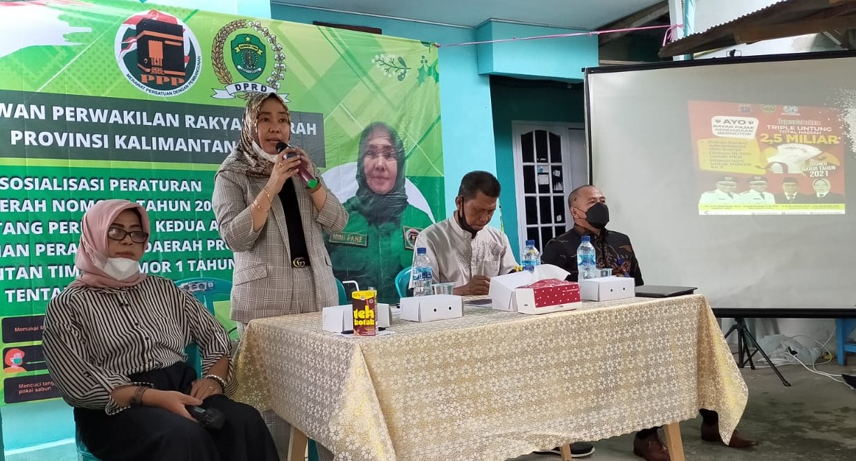 BALIKPAPAN,suarabalikpapan.com-Anggota DPRD Kaltim, Mimi Meriami BR Pane, SE dari Fraksi PPP melakukan sosialisasi Perda Nomor 01 Tahun 2019 tentang Perubahan Kedua Atas Perubahan Perda Provinsi Kaltim Nomor 1 Tahun 2011 Tentang Pajak Daerah, di Jalan Bonto Bulaeng, RT 02 Kelurahan Sumber Rejo, Balikpapan Tengah, pada Sabtu (3/12/2021) pukul 14.00 wita.