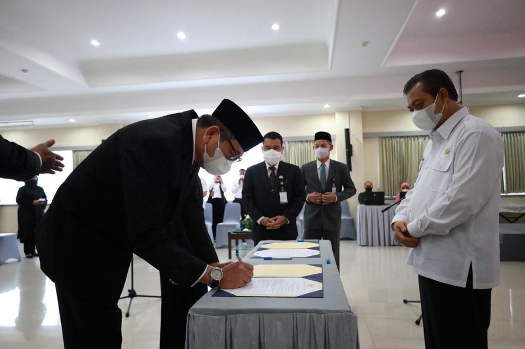 Sugeng dilantik Wakil Gubernur (Wagub) Kaltim Hadi Mulyadi di Ruang Rapat II lantai 3 Kantor Badan Kepegawaian Daerah (BKD) Kaltim, Jalan M Yamin Samarinda, Rabu (27/7/2022). Dalam pelantikan ini dihadiri pula Pejabat Sekda Provinsi Kaltim Riza Indra Riadi, Kepala BKD Provinsi Kaltim Didi Rusdiansyah Anan Dani dan kepala BPSDM Prov Kaltim Nina Dewi.