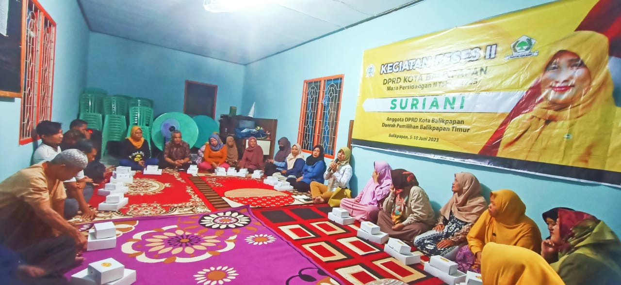 Anggota DPRD Hj. Suryani saat menggelar reses Masa Sidang II/2023 di Jalan Mulawarman RT 12 Kelurahan Manggar, Balikpapan Timur, pada Rabu (7/06/2023) malam