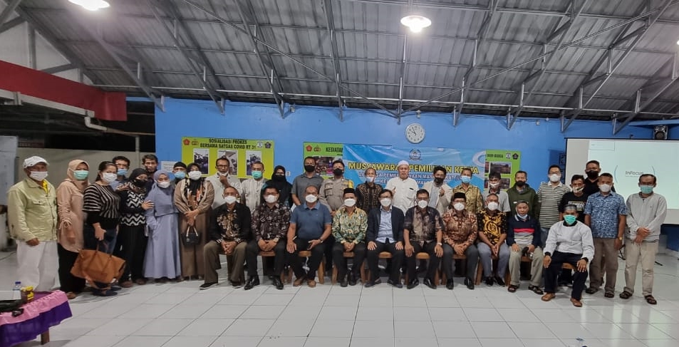 Ketua LPM Damai Bahagia terpilih H Yusri berfoto bersama usai pemilihan di Aula PKK Kompleks Perumahan BDS I, RT 31 Kelurahan Damai Bahagia