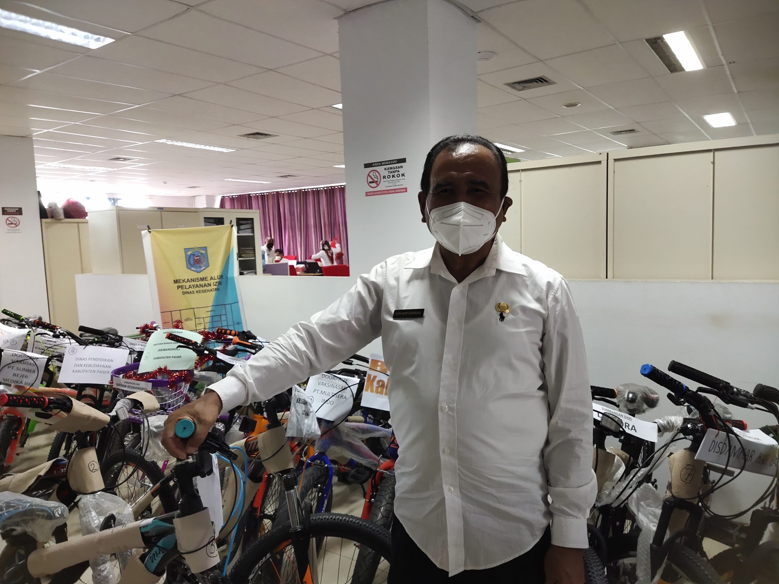 Hal tersebut diungkapkan Kepala Dinas Kesehatan Kabupaten Paser dr I Dewa Made Sudarsana saat ditemui diruangannya. Menurutnya, hal ini dilakukan oleh Pemkab Paser untuk menarik minat para lansia agar mau divaksinasi. Sebanyak 38 unit sepeda disiapkan oleh Pemkab Paser yang berasal dari para OPD, perusahan serta perbankan dalam upaya mendukung dan mensukseskan program vaksinasi bagi para lansia.