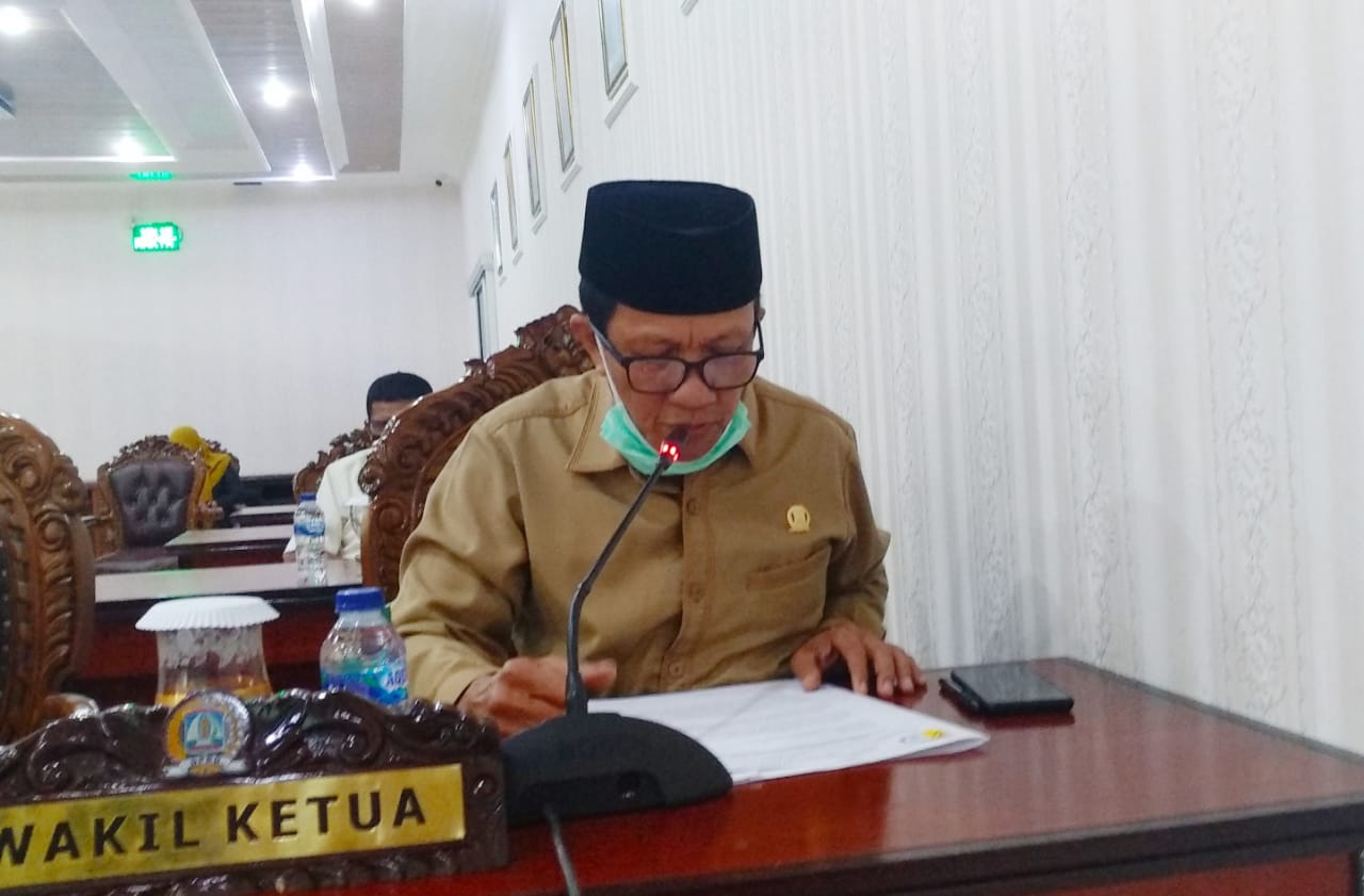 Ketua Pansus PMS DPRD Kota Balikpapan Aminuddin saat menyampaikan 7 rekomendasi dalam rapat paripurna di Gedung Parlemen Balikpapan