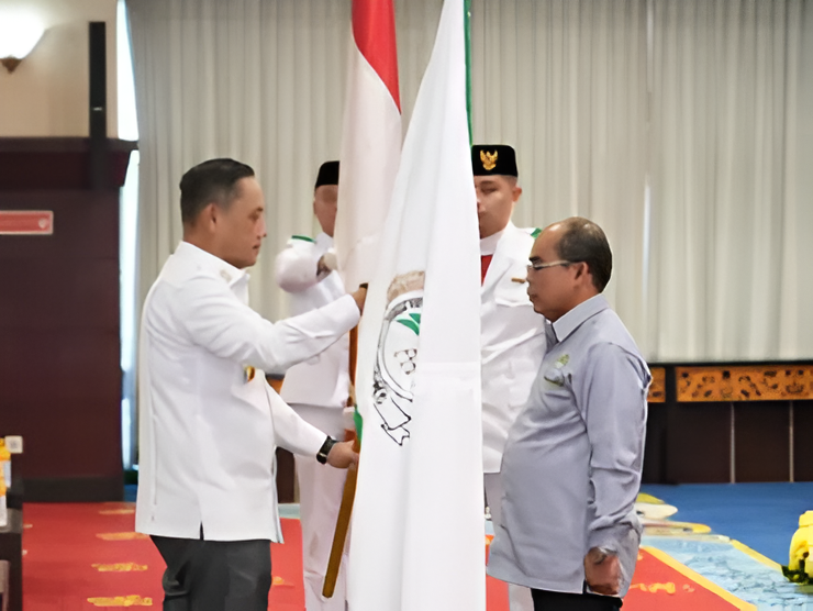 Pelantikan ditandai dengan penyerahan pataka FPKS oleh Wagub Seno Aji kepada Ketua Umum DPP FPKS Kaltim, Asbudi, disaksikan jajaran pengurus pusat dan tamu undangan.
