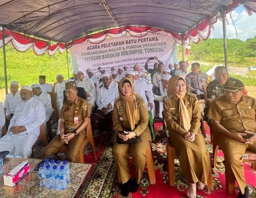SAMARINDA,suarabalikpapan.com-Wali Kota Samarinda, Dr H Andi Harun yang diwakili oleh Kepala Dinas Perumahan dan Kawasan Permukiman (Disperkim) Herwan Rifai menghadiri Peletakan Batu Pertama pembangunan Pondok Pesantren (Ponpes) Yayasan Barokah Sekumpul Tunggal, di Perumahan Korpri Loa Bakung, Kelurahan Loa Bakung, Kecamatan Sungai Kunjang, Selasa (27/2/2024).