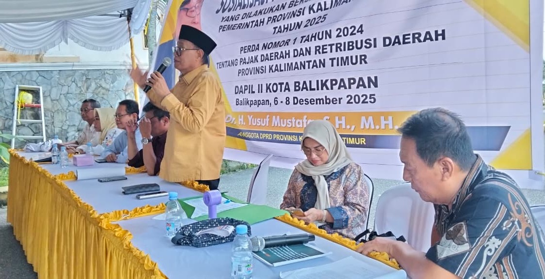 BALIKPAPAN,suarabalikpapan.com – Anggota DPRD Kalimantan Timur (Kaltim) dari Fraksi Partai Golkar, Dr. H. Yusuf Mustafa, SH, MH, menggelar Sosialisasi Peraturan Daerah (Perda) tentang Pajak Daerah dan Retribusi Daerah. Kegiatan berlangsung di Jalan Agung Tunggal RT 14, Kelurahan Damai Baru, Kecamatan Balikpapan Selatan, Minggu (7/12/2025) sore.